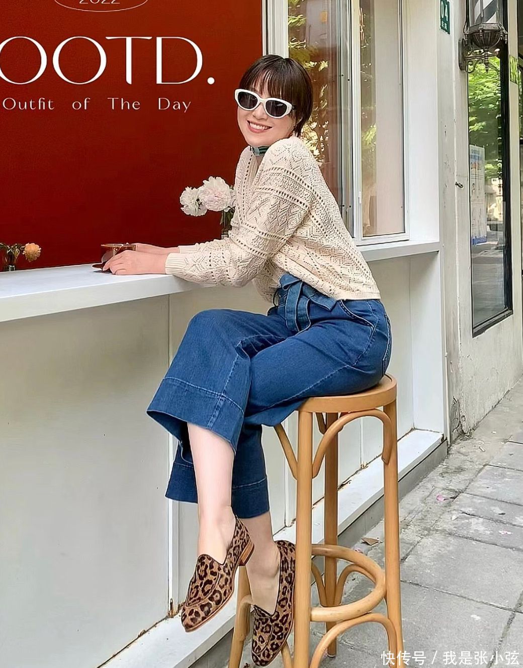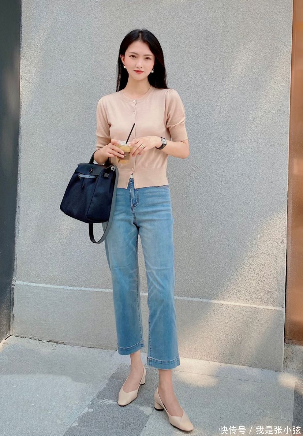 搭配造型①吊带+奶奶衫+牛仔阔腿裤